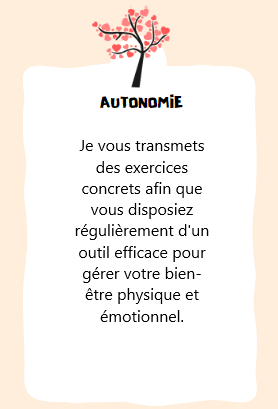 Ma mission est de vous aider à vivre une vie plus paisible et plus satisfaisante en utilisant les techniques de la sophrologie et de la réflexologie plantaire. Je crois que chacun mérite de se sentir bien dans son corps et dans son esprit, et je suis là pour vous aider à y parvenir.
